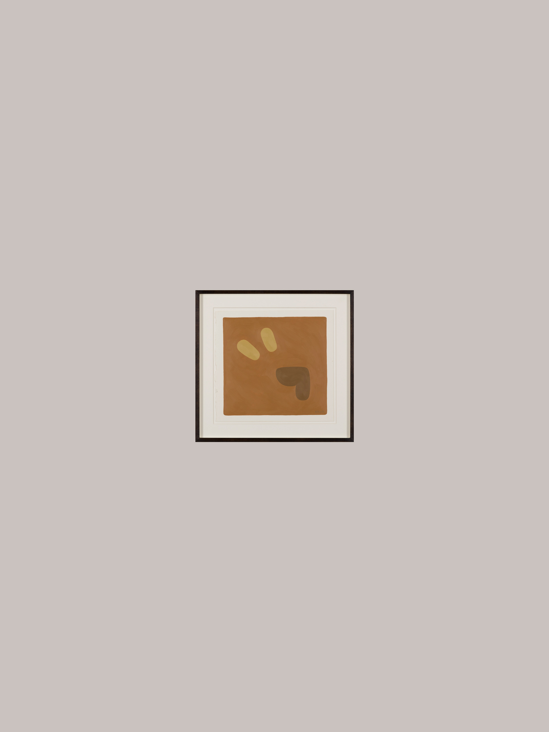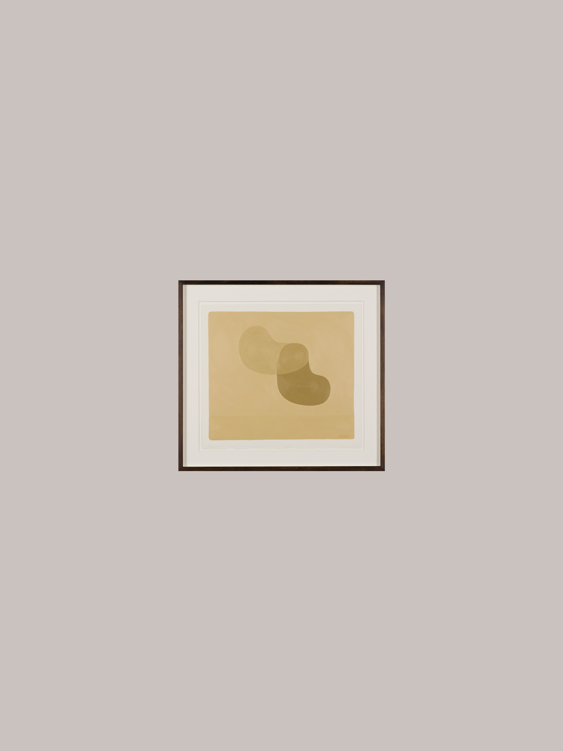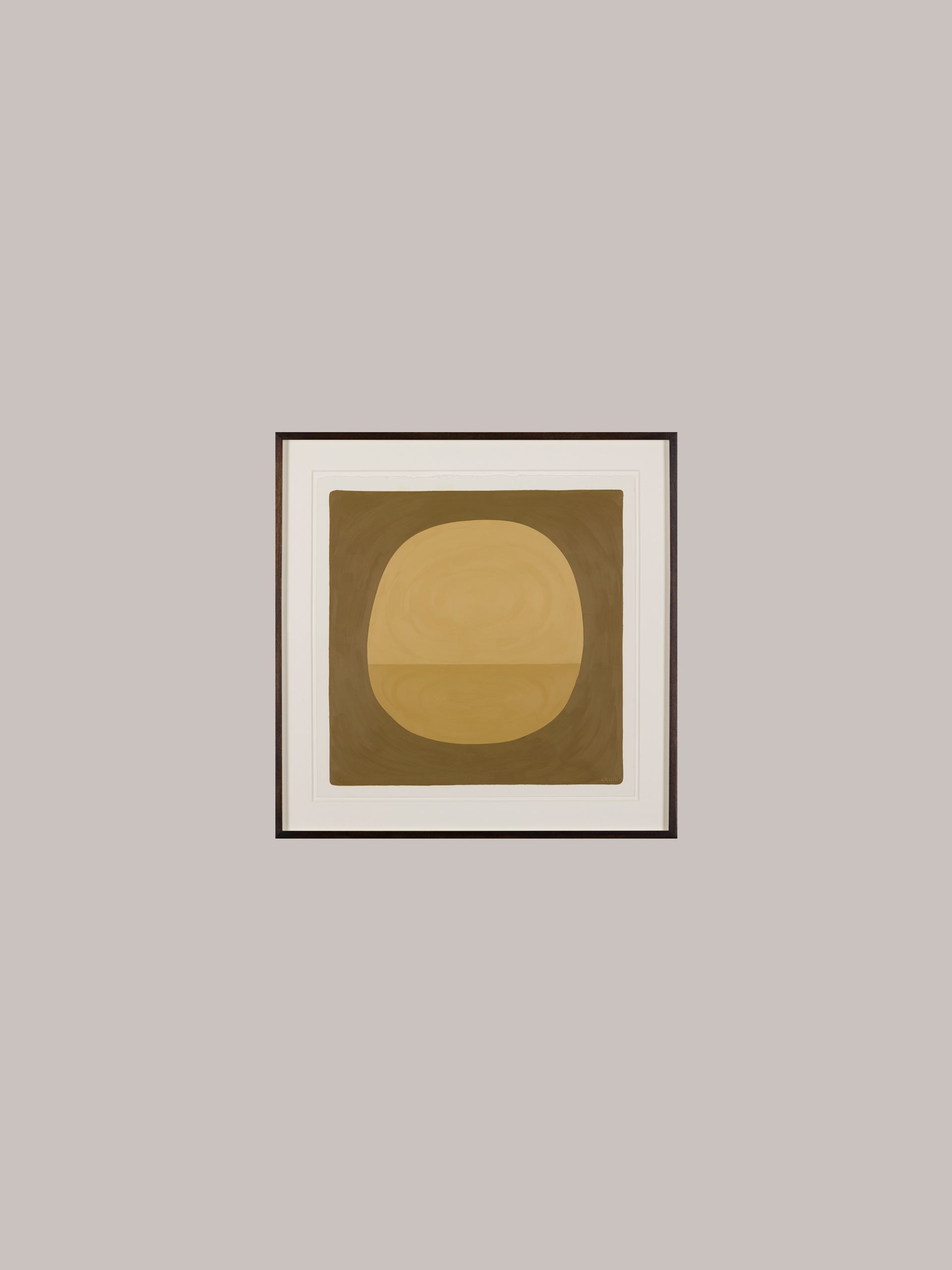 Warm, tactile shades of brown, ochre, terracotta, moss-green and dusty orange typify the paintings in this series, combined with a distinct language of bold, curving forms. The earthy, organic tones, applied with deep brush strokes, heighten the works’ materiality, as if one could reach out to touch the surface of the paint and feel warm, sun-baked soil against one’s fingers, or the comforting rays of the sun itself. “Oil painting allows me to build deep, rich colours by gradually adding layers of hue over time,” says Richard. “I can spend hours mixing each colour as I add warmth and energy to my paintings. Colour is tied directly to energy, and for me, this energy comes from the complex structure and textures of the oils interacting with each other.”